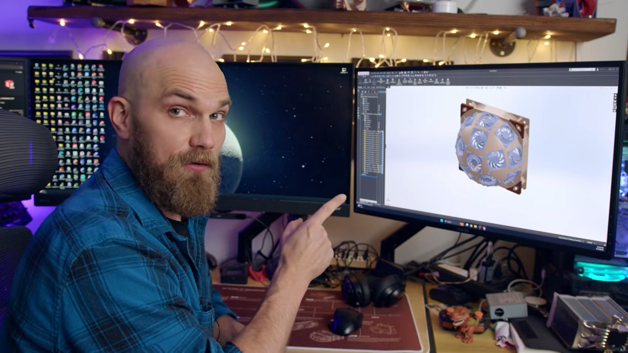 老玩家对这位UP主应该不会陌生。上个月他打造“Fanhattan Project”同样塞下15把风扇的定制穹顶散热装置,当时就在硬件圈引发了热议。这次的超级穹顶,设计灵感正来自上期视频的用户评论。有玩家留言建议,不用小众小尺寸风扇,直接用标准规格的猫头鹰NF-A12x25 120mm风扇,替换机箱原装侧板做散热改造。