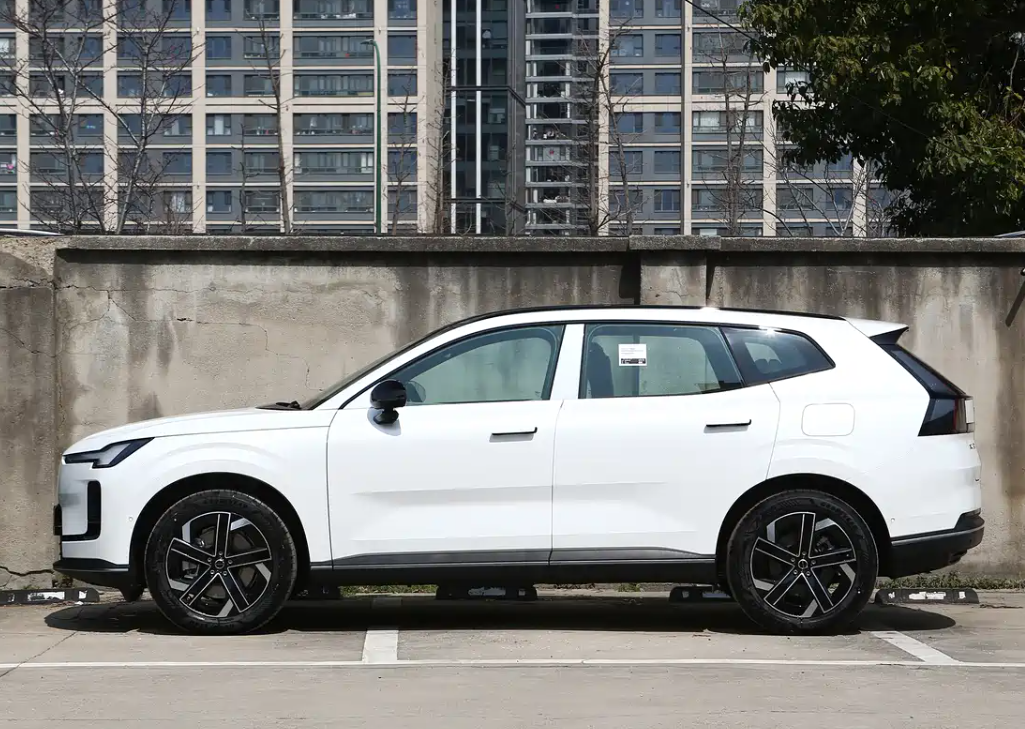 车身侧面线条简洁利落,车顶配备行李架,贯穿式腰线勾勒出流畅轮廓,采用隐藏式门把手优化风阻;轮眉与侧裙处的筋线设计强化了车身层次感。