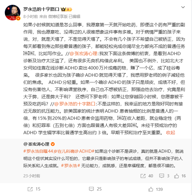 他还提及,自己是幸运的,拥有接近无敌的抗压能力,而多数ADHD患者面临着诸多困境。