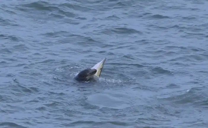 胆子大的灰海豹先拿港湾鼠海豚试水,然后现在是体型更大一点的真海豚,感觉这种动物正在逐步扩大食谱。