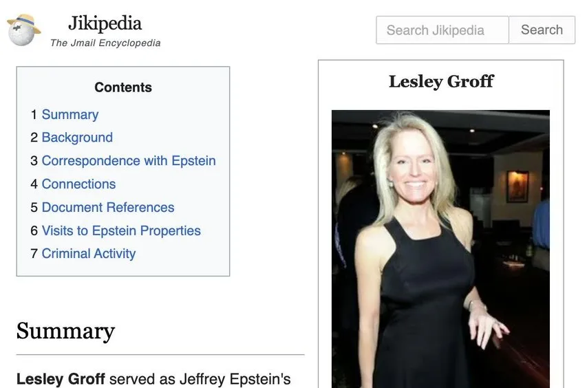 Jmail团队近日推出了一个类似维基百科的全新网站Jikipedia,该平台将杰弗里·爱泼斯坦的海量电子邮件数据转化为详尽的档案资料,涵盖其众多关系人的信息。这些档案条目包括这些关联人士访问爱泼斯坦房产的记录、他们可能了解爱泼斯坦罪行的程度