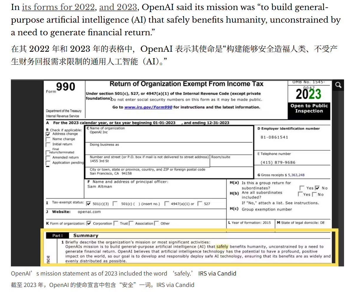 曾几何时谷歌的不作恶承诺成为美国公司的道德楷模,国内也有很多人因此崇拜谷歌,然而谷歌后面删除了这个承诺,现在OpenAI也来了这么一出,删除了AI的安全承诺。OpenAI的成立初衷是为了研发出造福人类、非营利性的AGI,然而最近几年Open
