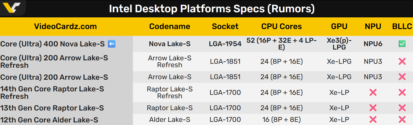 据Kopite7kimi最新透露,Intel下一代桌面平台Nova Lake的旗舰型号满载功耗将突破700W,较现款Arrow Lake旗舰翻倍,直逼HEDT工作站级别。Nova Lake将接替Arrow Lake,搭配900系芯片组与LG