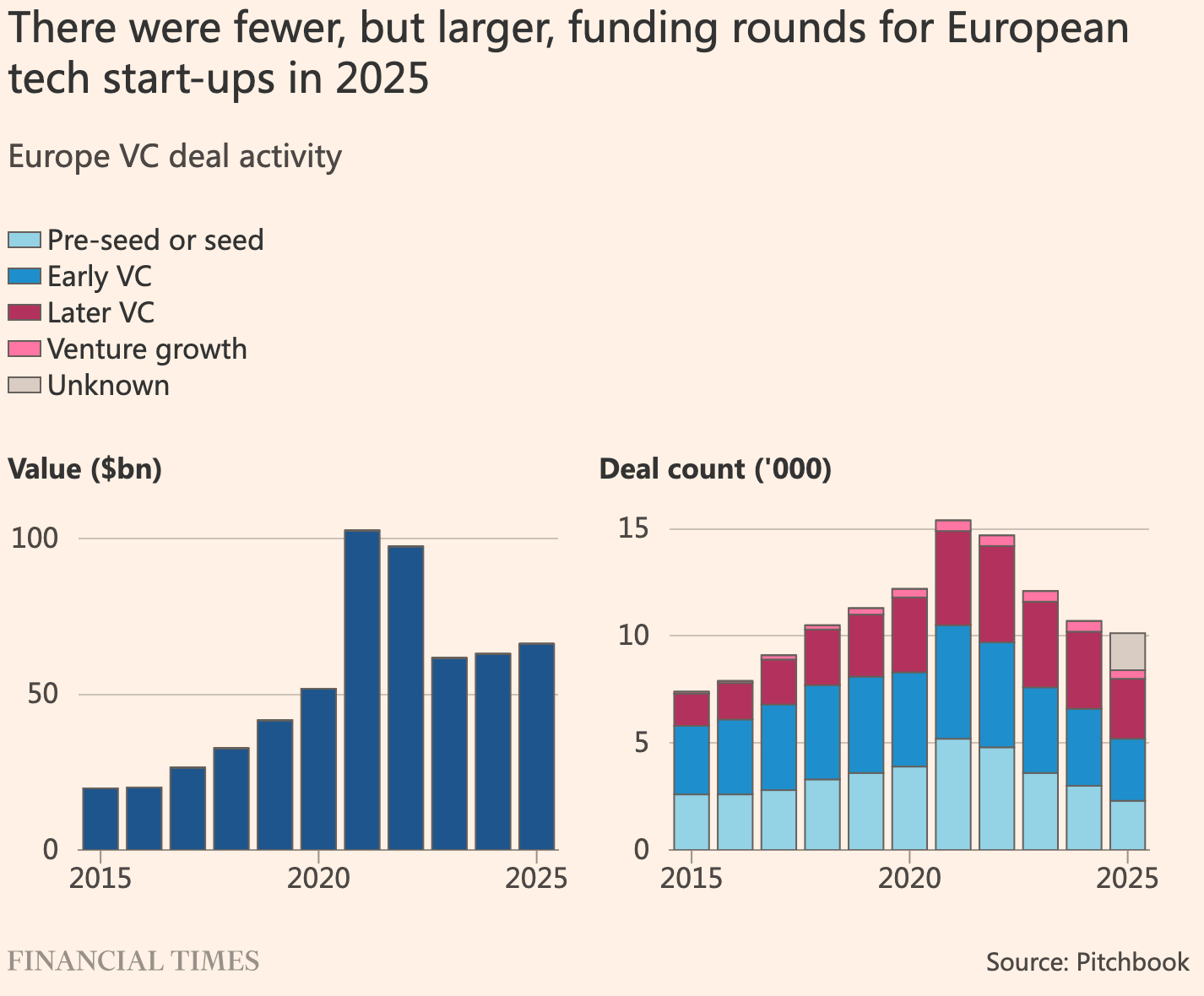 欧洲投资者正向人工智能与防务科技领域的初创企业投入数十亿欧元资金,这些公司被视为支撑欧洲经济竞争力与安全能力的关键力量。 根据PitchBook数据,2025年欧洲创投总额增长5%,达到660亿欧元,创下疫情以来新高,而这一增长主要由顶尖A