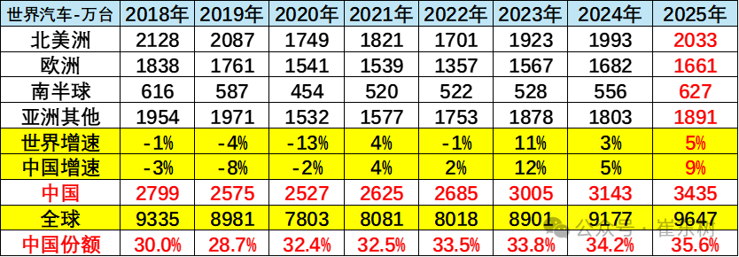 乘联会秘书长崔东树发文称,2025年全球汽车市场格局再迎突破,中国汽车以35.6%的世界份额创下历史新高。数据显示,2025年全球汽车总销量达9647万台,中国以3435万台的销量贡献核心增量,远超美国的1672万台、印度的558万台、日本