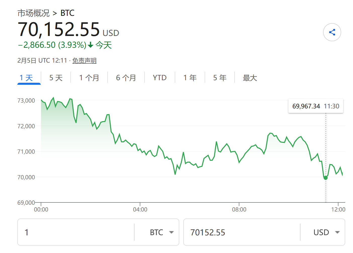 比特币跌破70000美元关口,为15个月以来首次,全球市场普遍出现避险情绪。这一全球最大的加密货币正延续其螺旋式下跌的趋势,从去年10月的高位已下跌逾44%。比特币周四纽约早盘一度跌至69,821美元,在2024年11月初唐纳德·特朗普再次