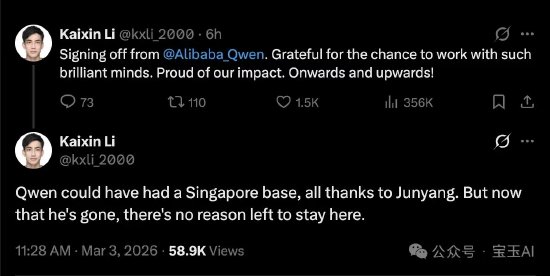 通义千问核心负责人林俊旸今日凌晨于X发文表示,自己将从千问项目step down(卸任)。其发文道:“me stepping down,bye my beloved qwen”。资料显示,林俊旸年仅 32 岁,是阿里巴巴